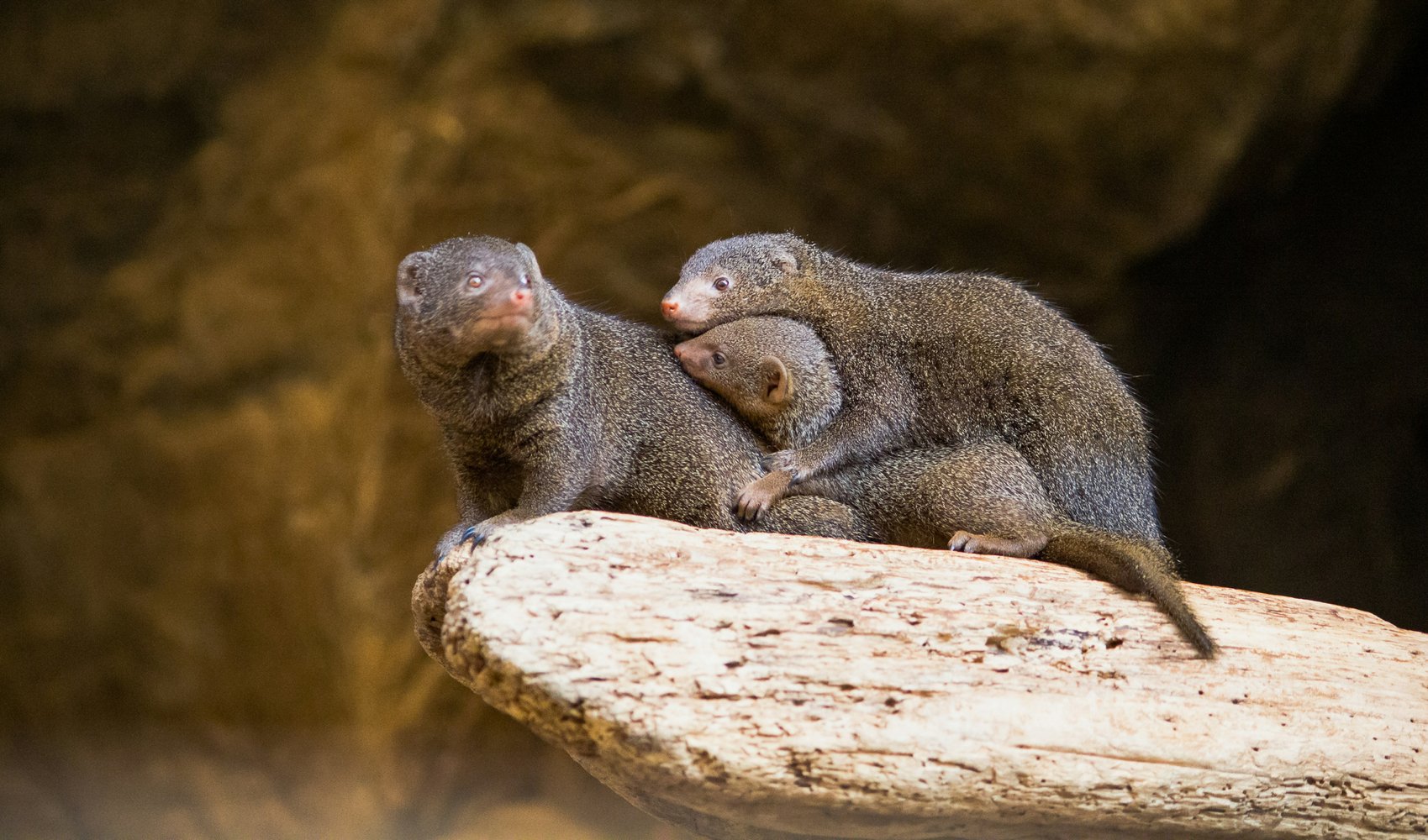 Как и многие млекопитающие, полосатые мангусты выращивают потомство сообща. Первые три-четыре недели детеныши растут под наблюдением матери, а потом маленькие мангусты должны будут найти себе «опекунов». Каждый малыш выбирает молодого мангуста из своей стаи, чаще всего самца.
