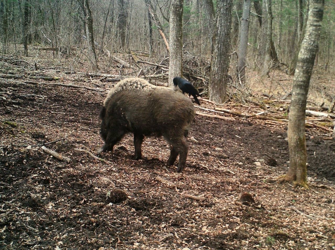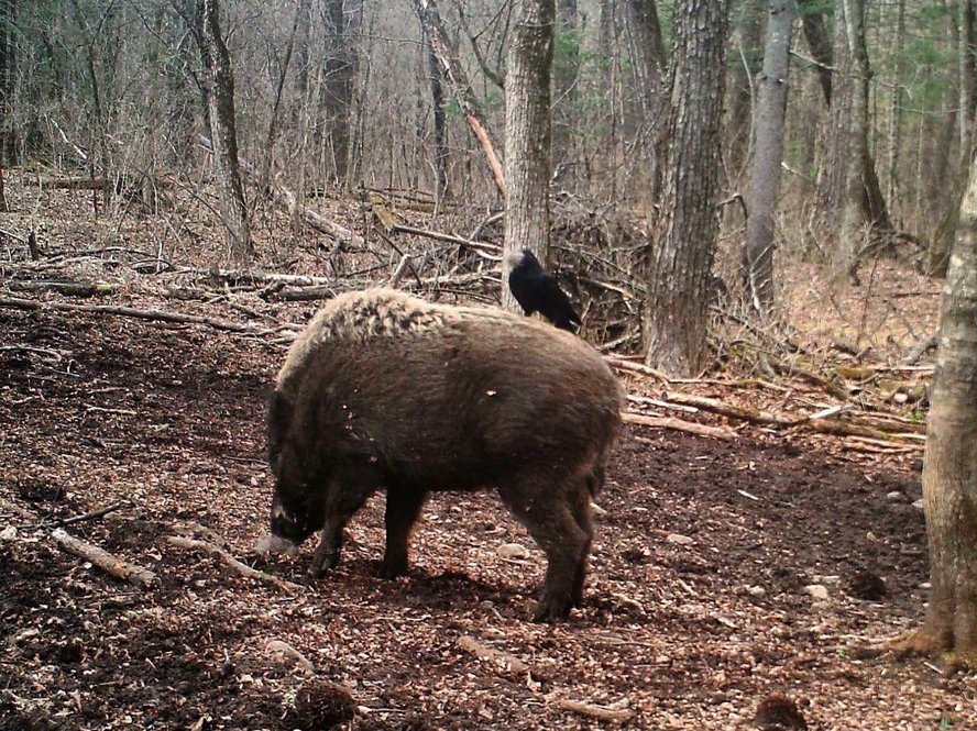 Правда, зачастую вороны собирают оставшуюся шерсть с деревьев, кустов или земли. В этот раз кабанам попалась уж очень дерзкая птица!