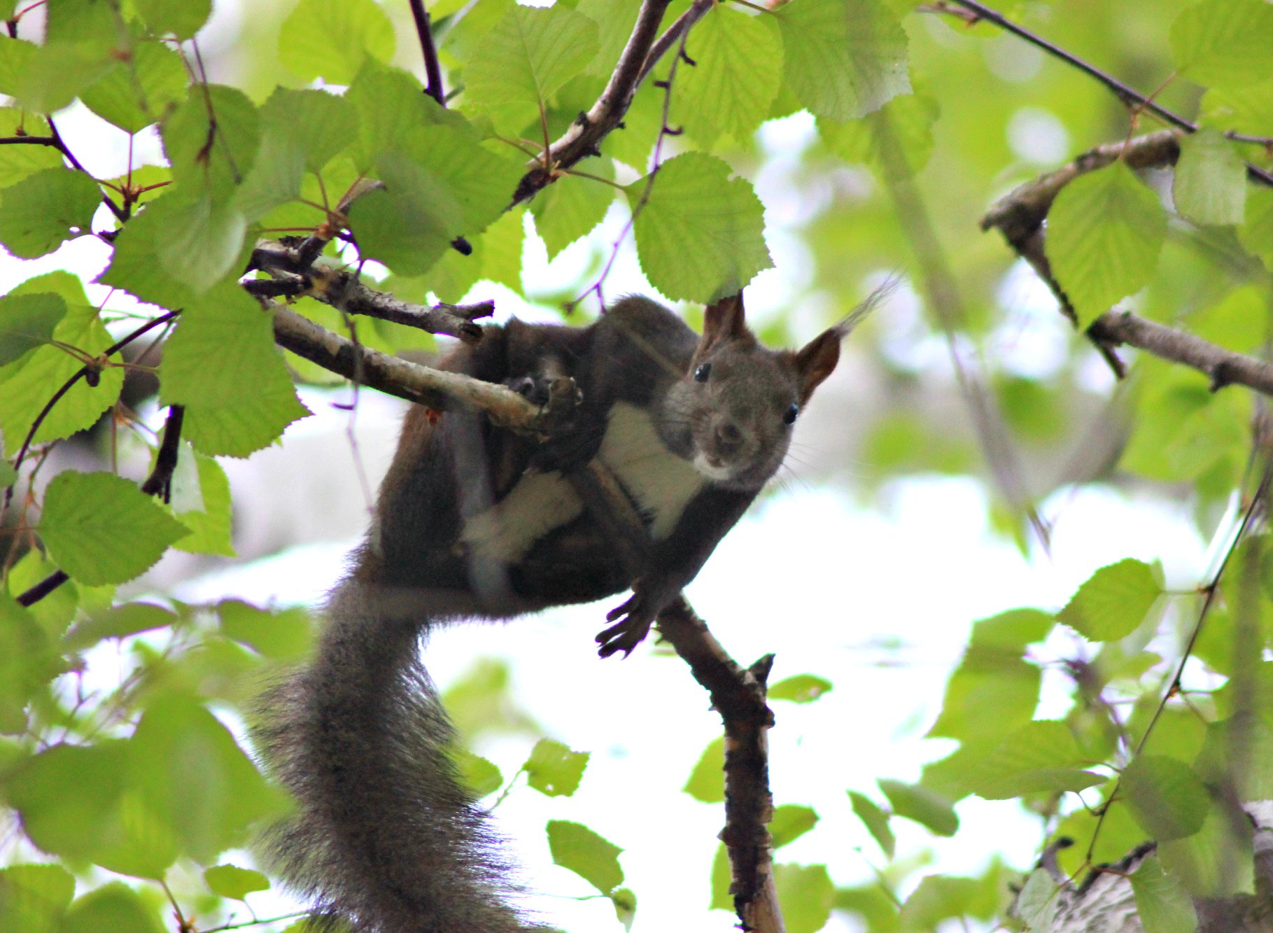 Таёжная белка она не рыженькая, как обычно рисуют на картинках, а скорее чёрная, с белой грудкой.