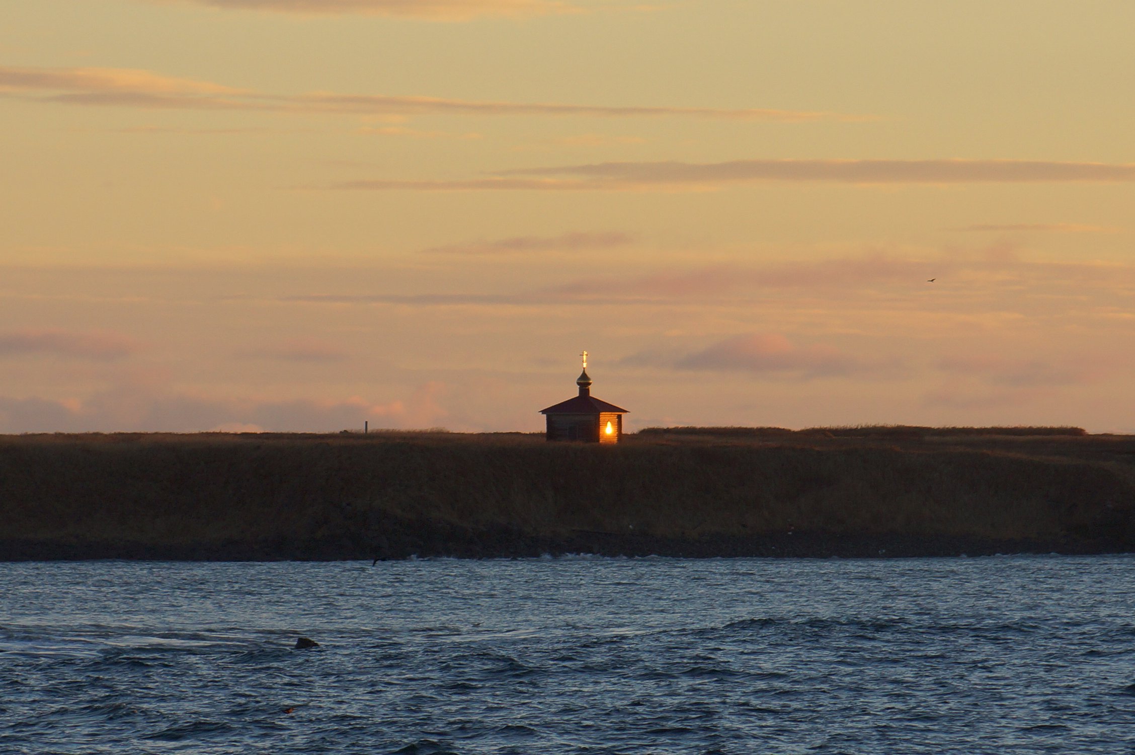 остров Танфильева Курильской гряды. Часовня на рассвете.