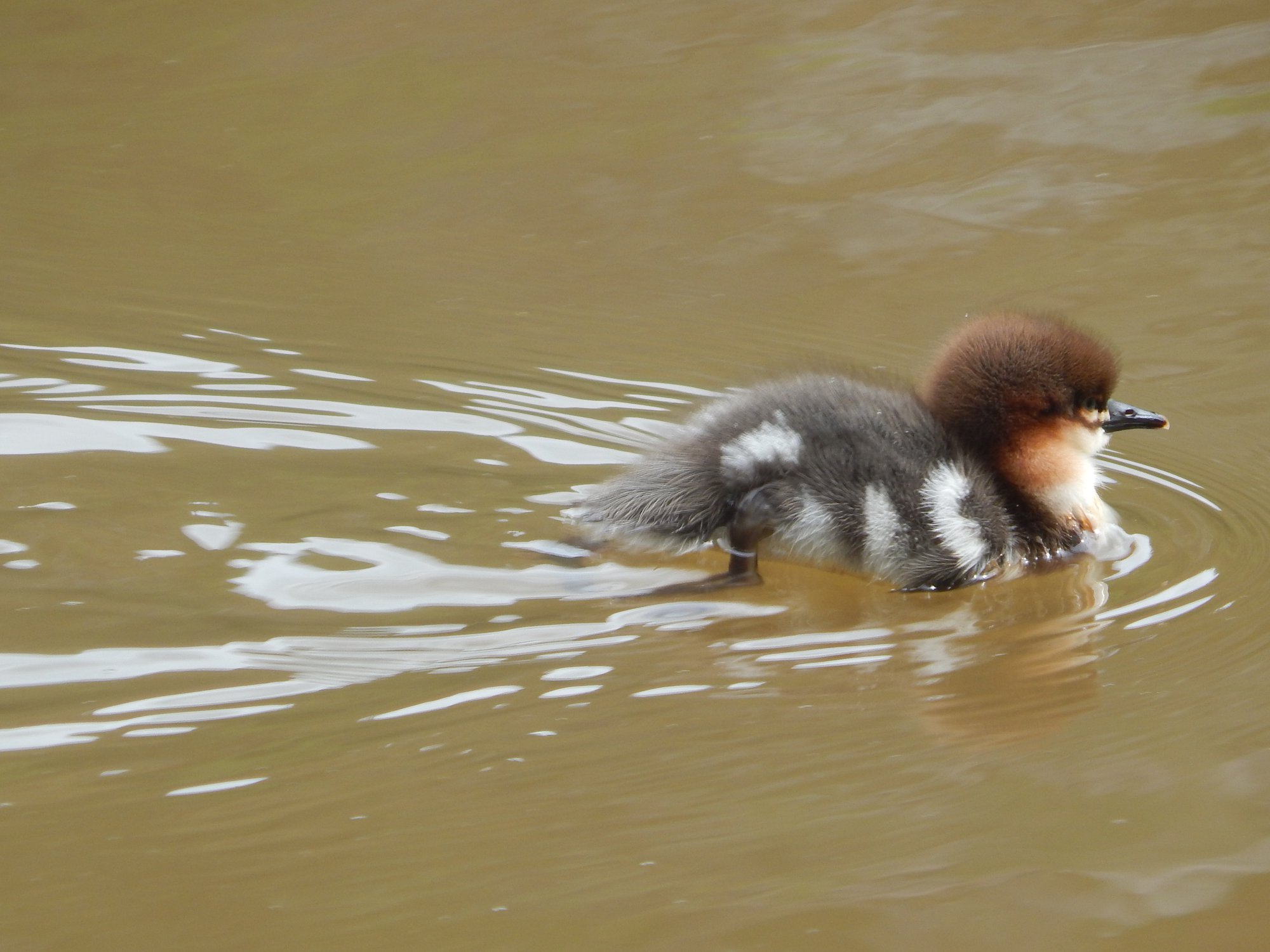 Р.Чусовая, после подъема уровня воды, утенок остался один, потяряв своих родных.