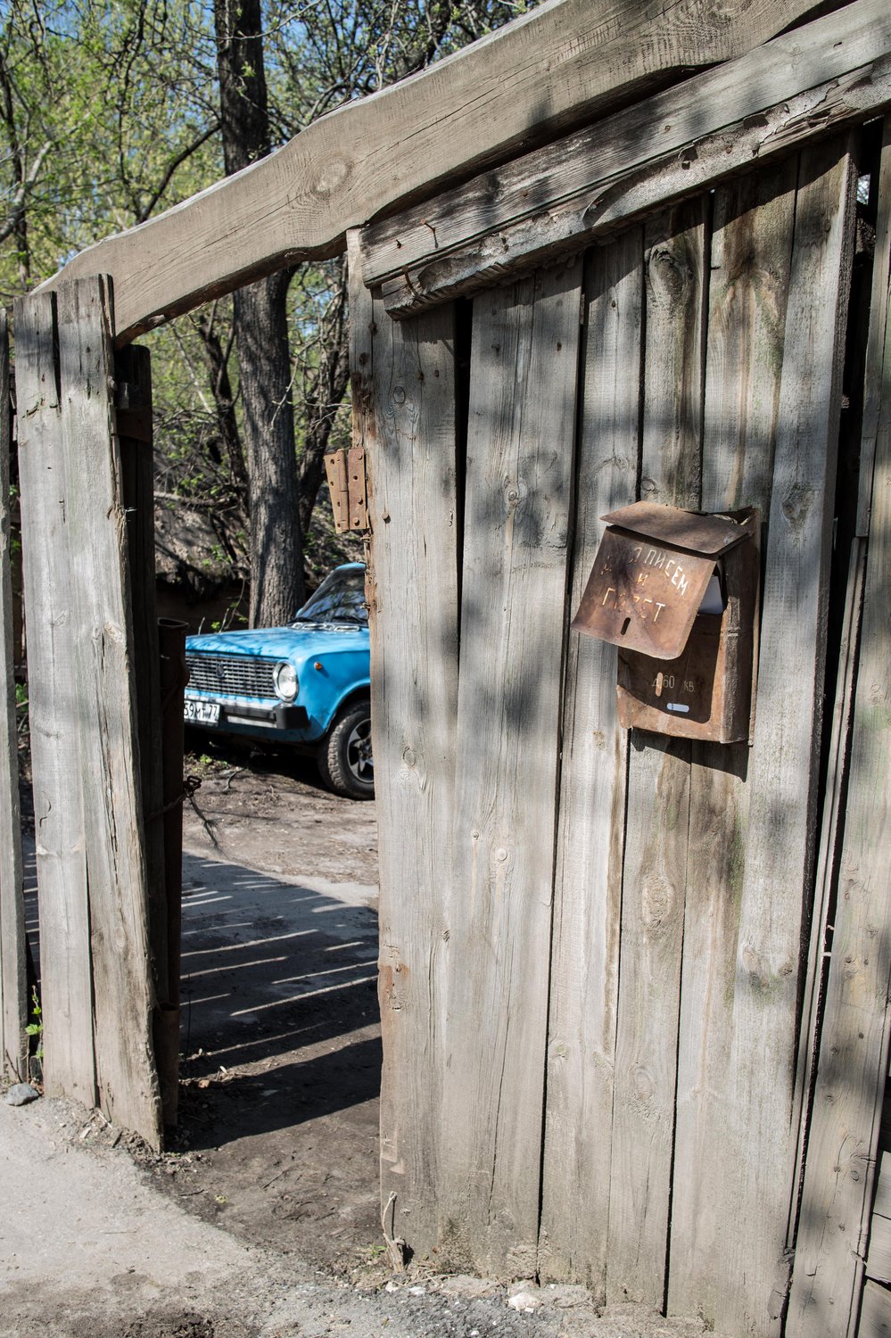фото сделано на майские праздники в поездке в Рязань. на пыльном чуть покосившемся заборчике висит ржавый почтовый ящик, но важно то, что внутри! свежие письма в ящике и ярко-голубая "копейка" за воротами