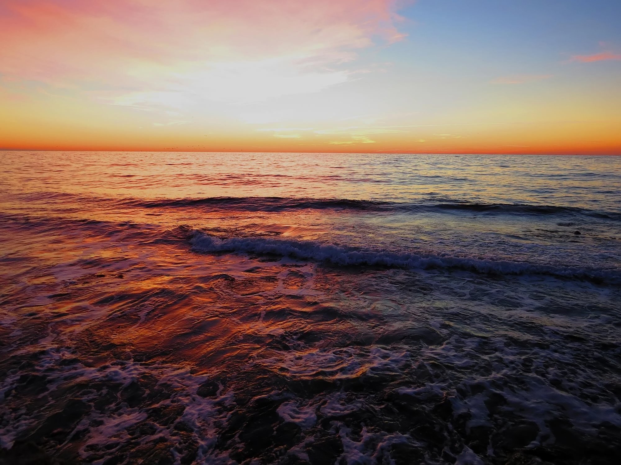 Солнечные краски заката разлились золотом в море