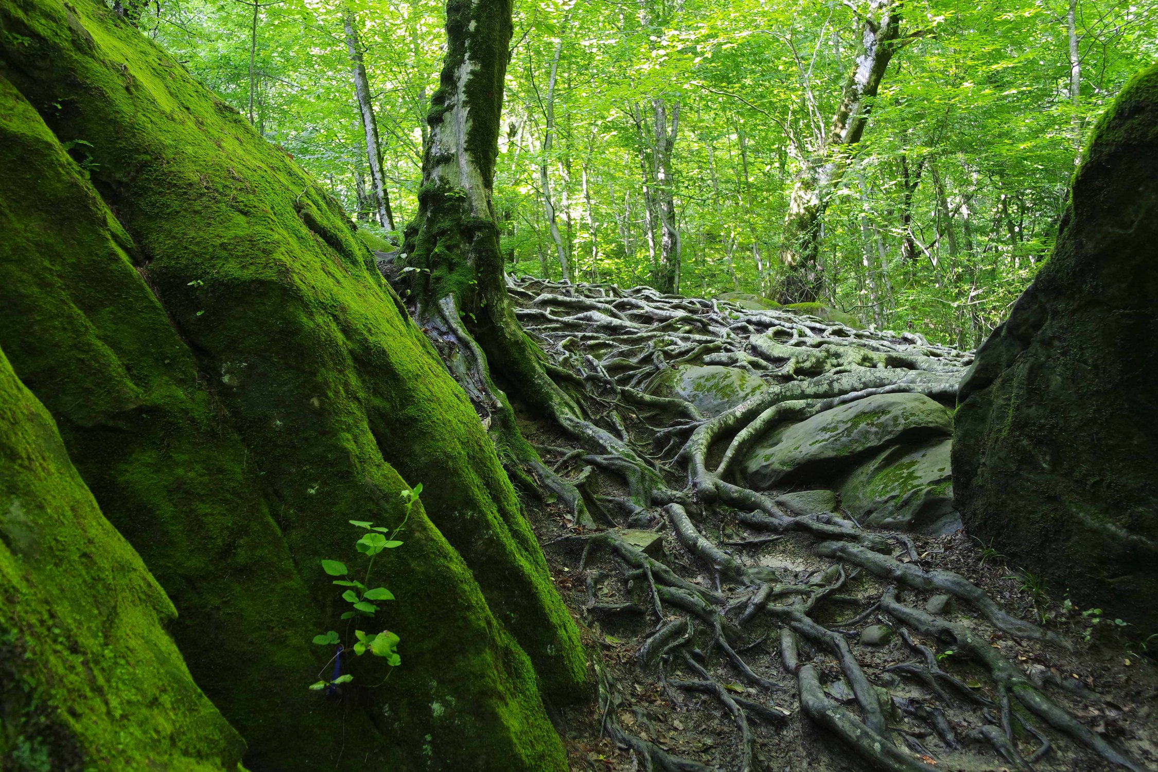 В Колхидском лесу почвы очень мало, под её тонким слоем сразу горные породы, поэтому деревья цепляются всеми силами... И это так красиво!