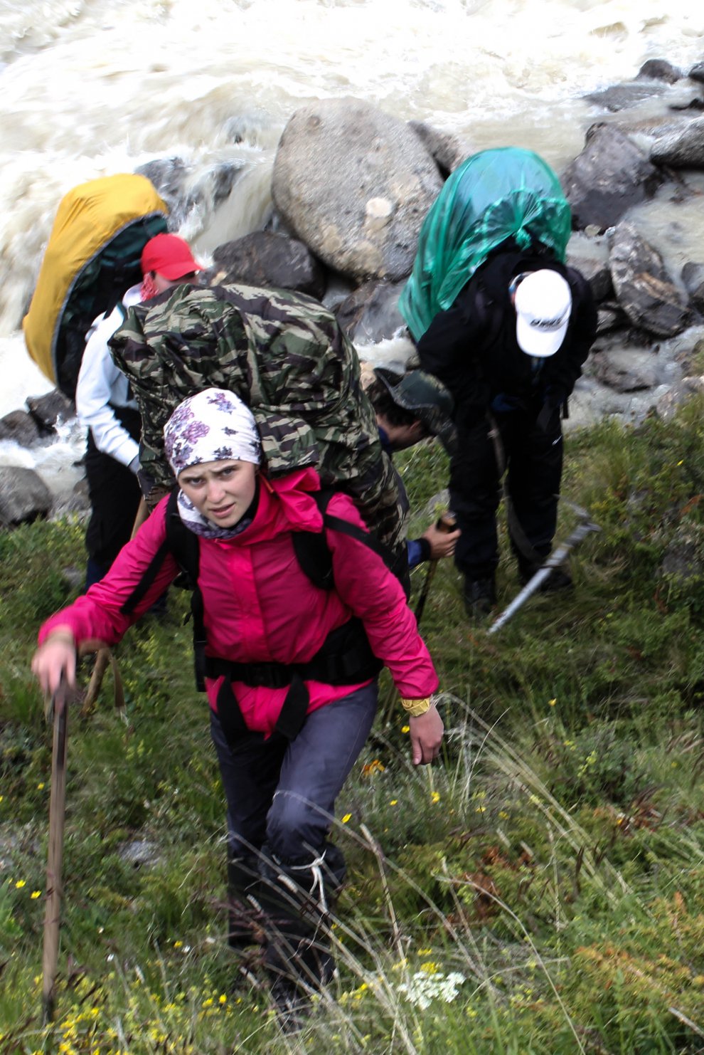 Я запечатлел эмоцию, демонстрирующую борьбу усталости с желанием пройти намеченный путь, девушки, взбирающуюся на очередной перевал.