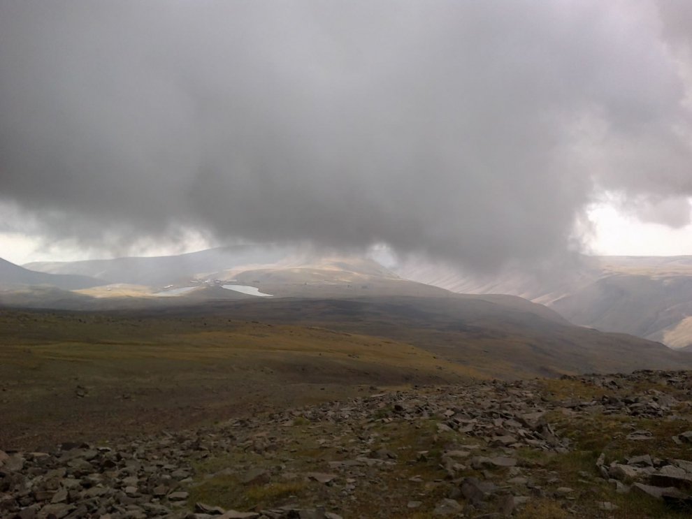 В дали озеро Кари. А это облако через минуту накрыла нас.