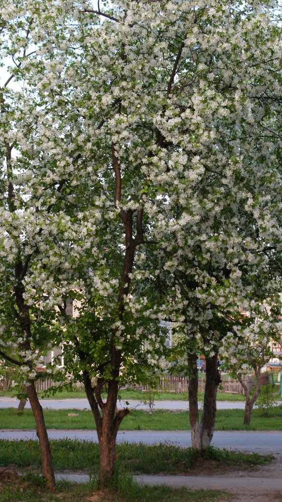 Удивительная пора! Когда яблони цветут! Возле дома - целая аллея растущих яблонь, красота!