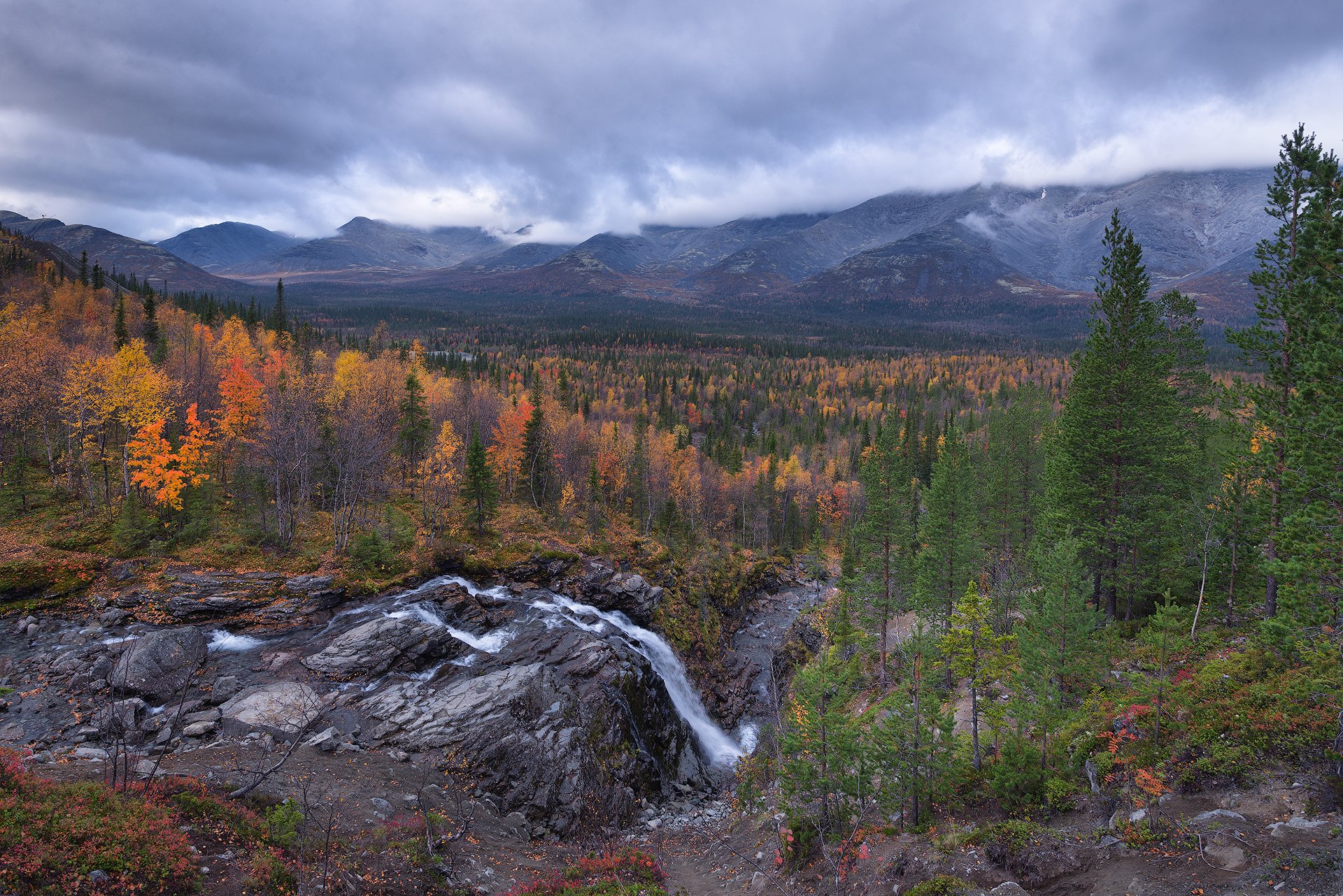 ручей Рисйок, водопад Красивый. Хибины. Кольский полуостров. сентябрь 2015.