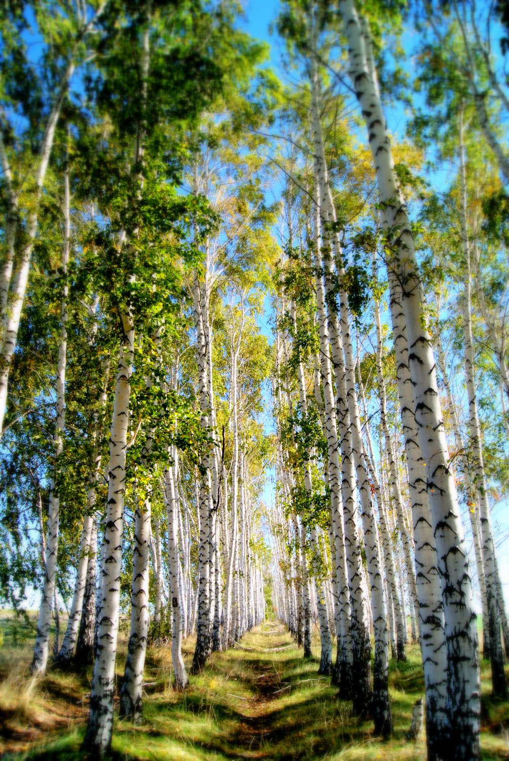 Берёзовая посадка теплым летним днём.