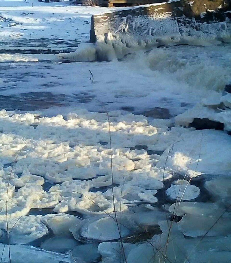 Вот такие чудеса творит русская зима на бывшем прусском водопаде. Речная пена застыла, приняв причудливые формы, похожие на волшебные ледяные кувшинки