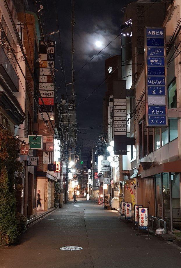 Осака. Ночь. Луна.