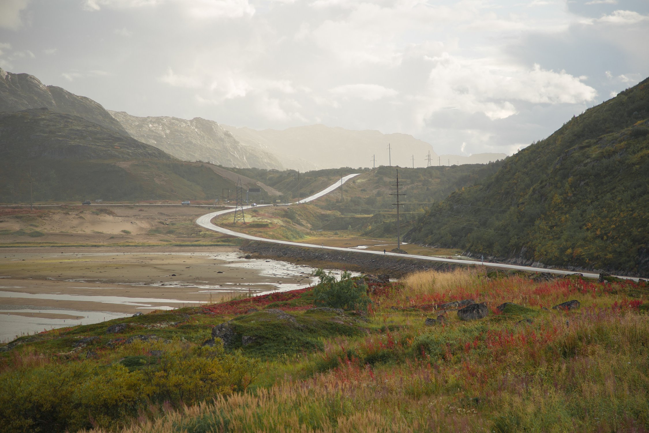 Вид на Серебрянскую дорогу, в селе Териберка Кольского района Мурманской области.