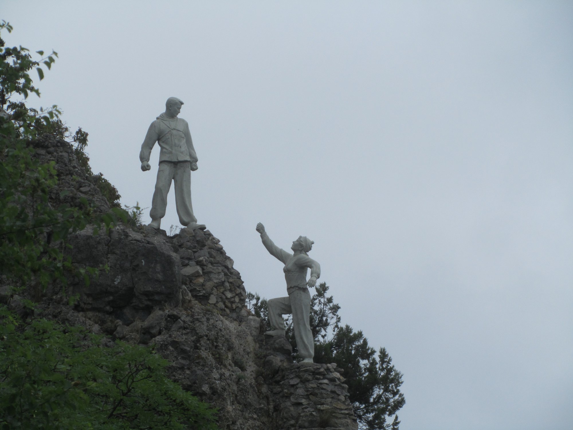 Крым, скульптурная группа советских времен "Альпинисты". Май 2018 г.