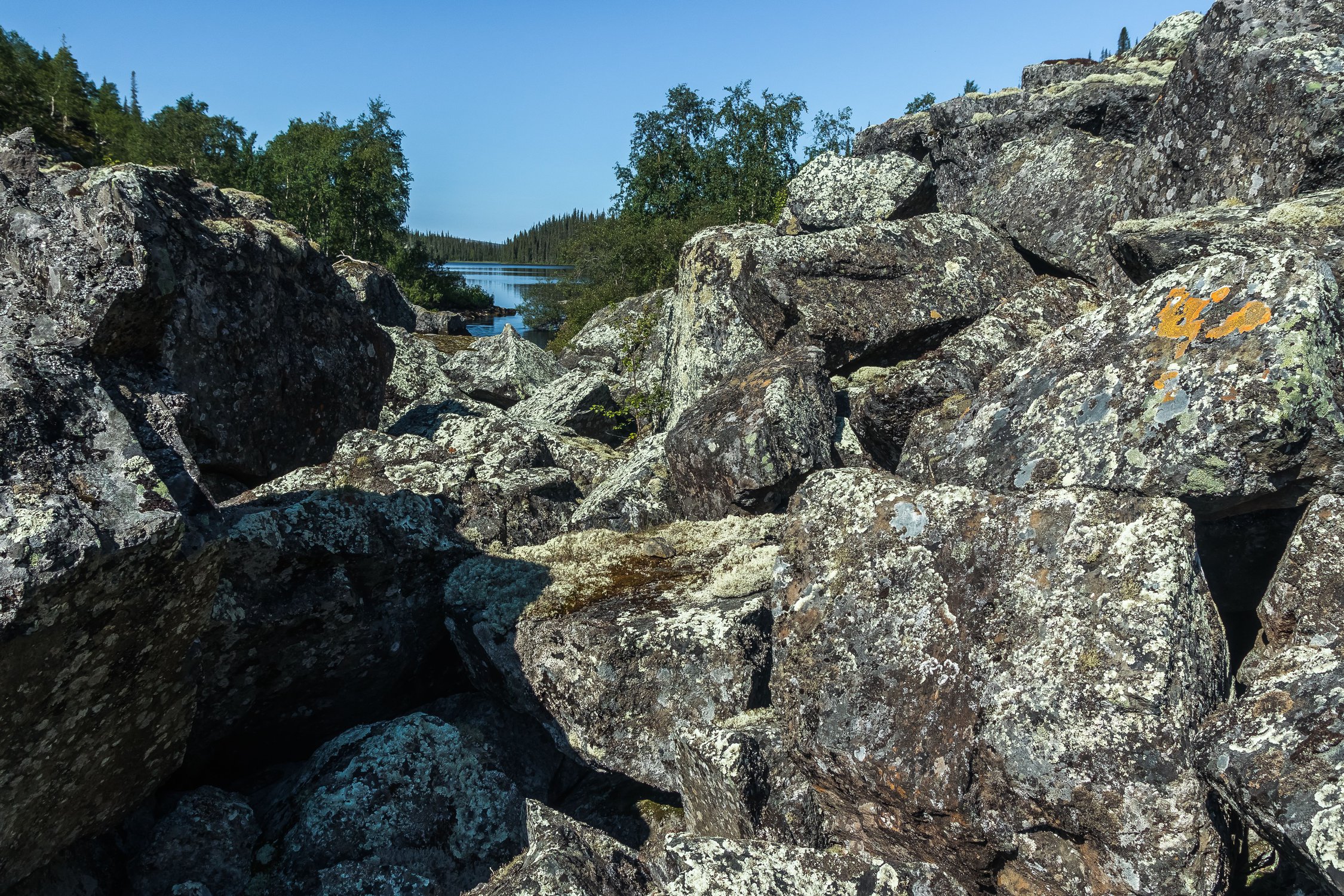 Северный пейзаж — озеро и деревья, заключенные в «каменную раму». Лапландский биосферный заповедник.
