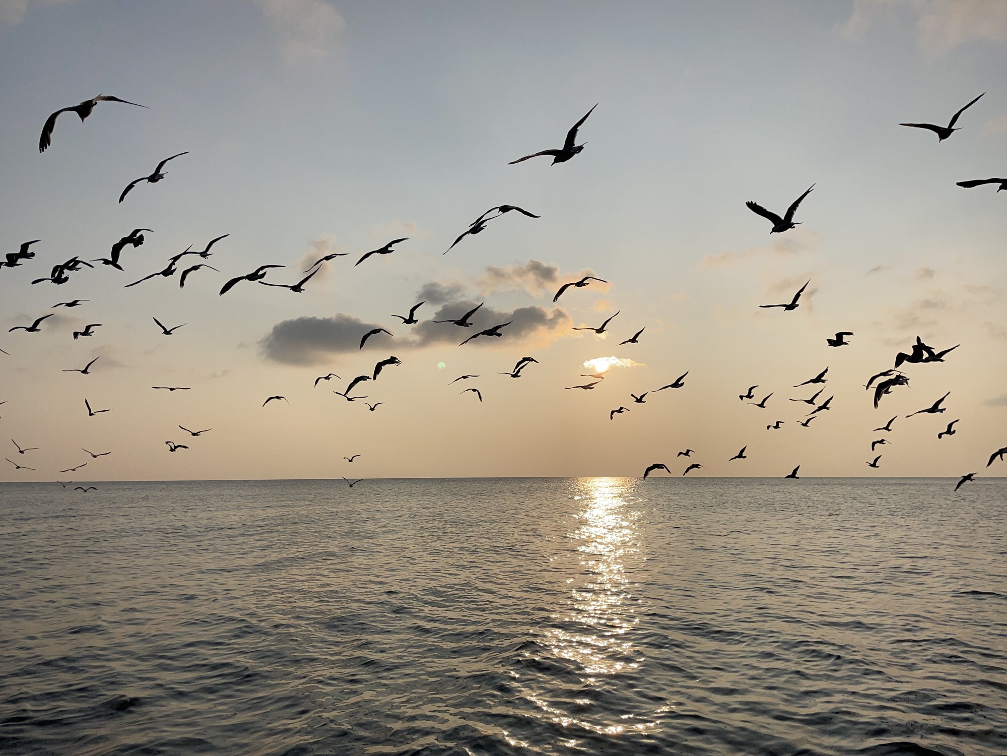 Чайки свободно летящие в закат