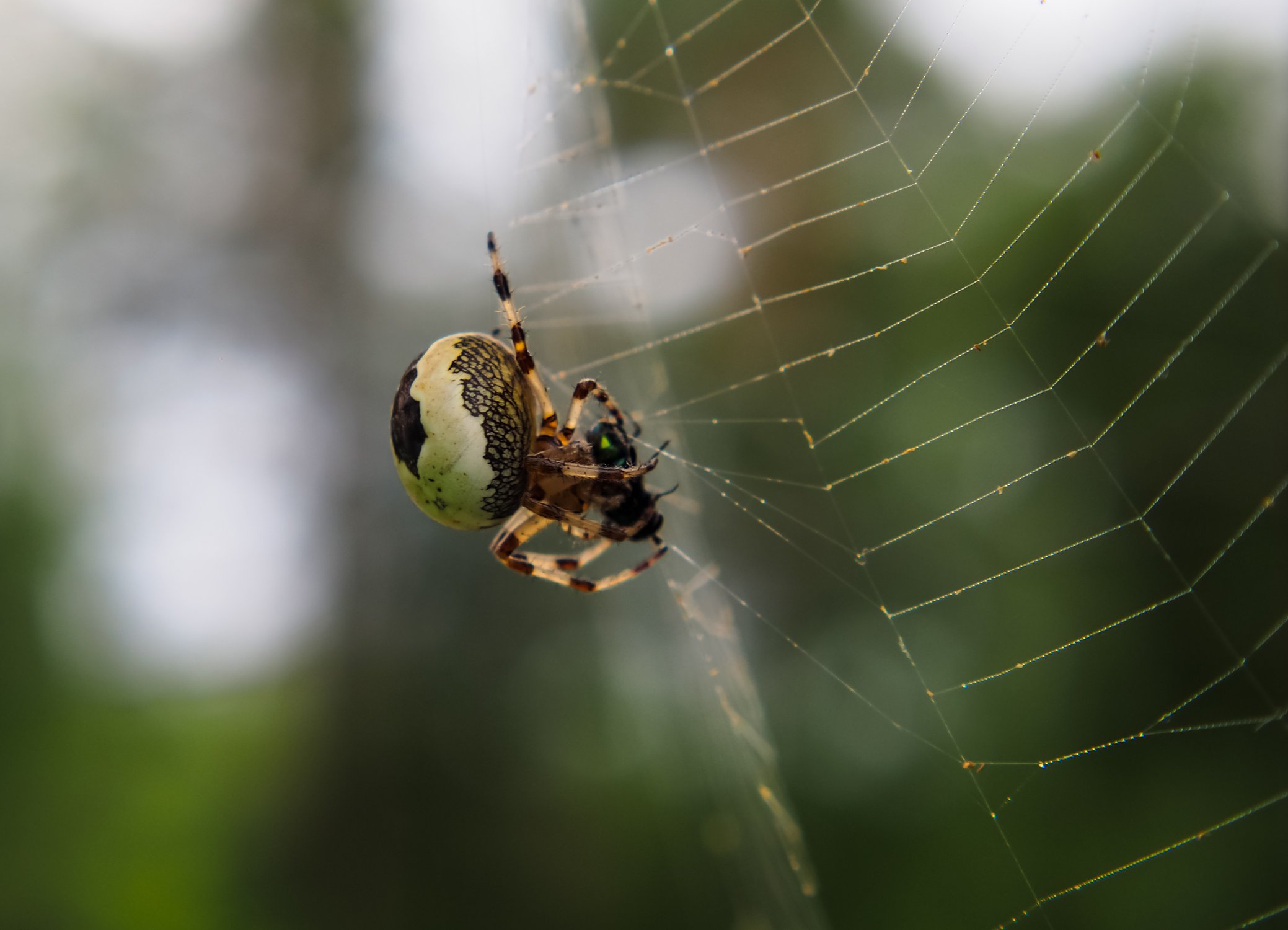Мраморный крестовик (лат. Araneus marmoreus , female)
