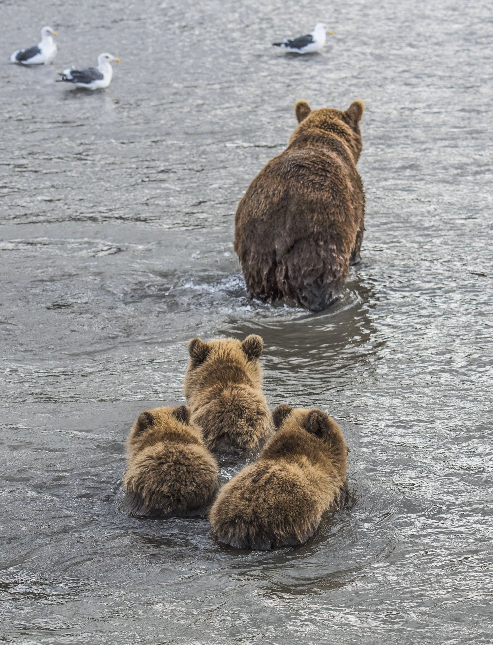 Медвежата-первогодки стараются не отстать от мамочки, но с каждым месяцем обретают все больше самостоятельности