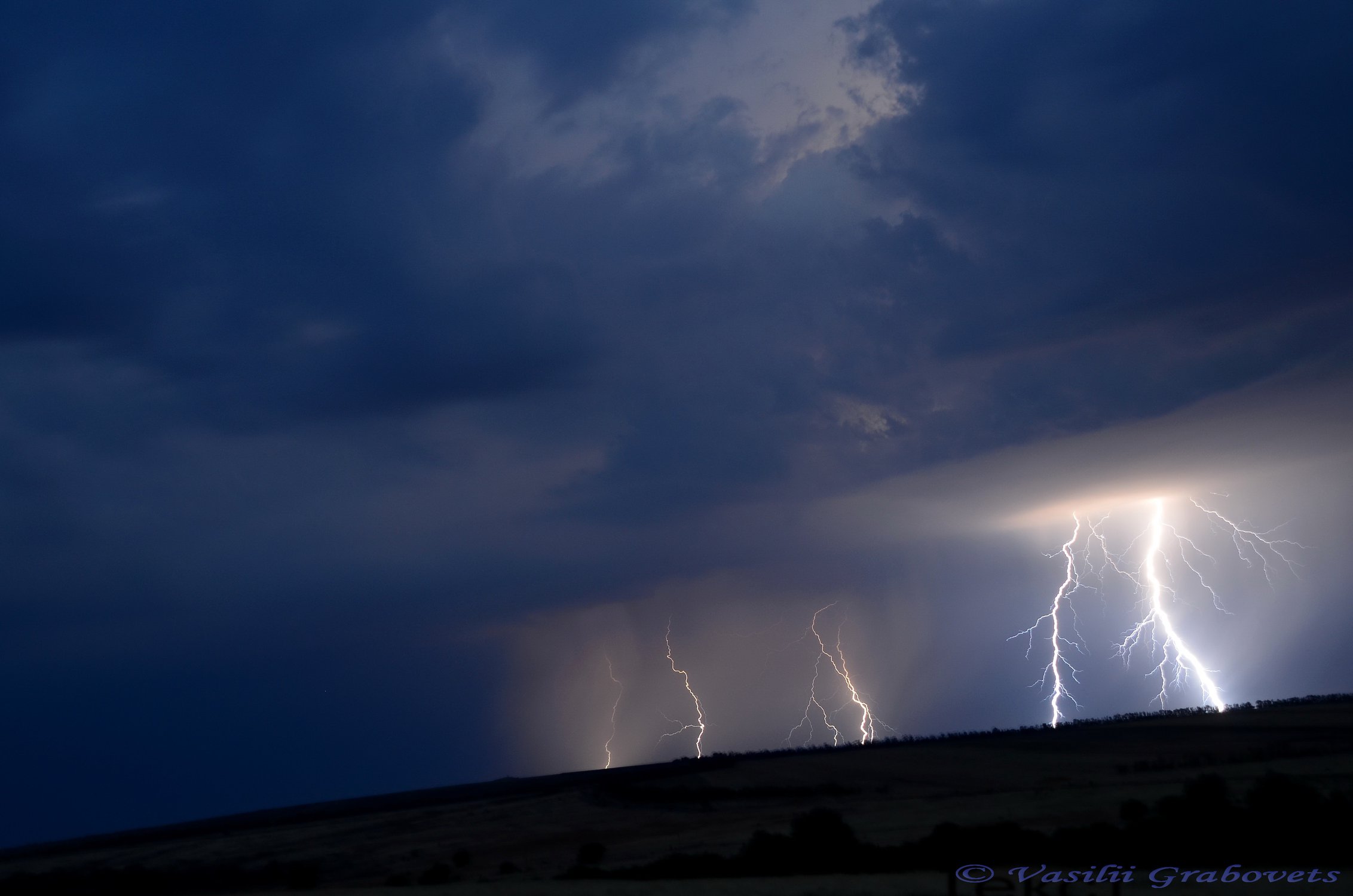 Окрестности Цимлянска, Ростовская область. Сухая гроза в степи.