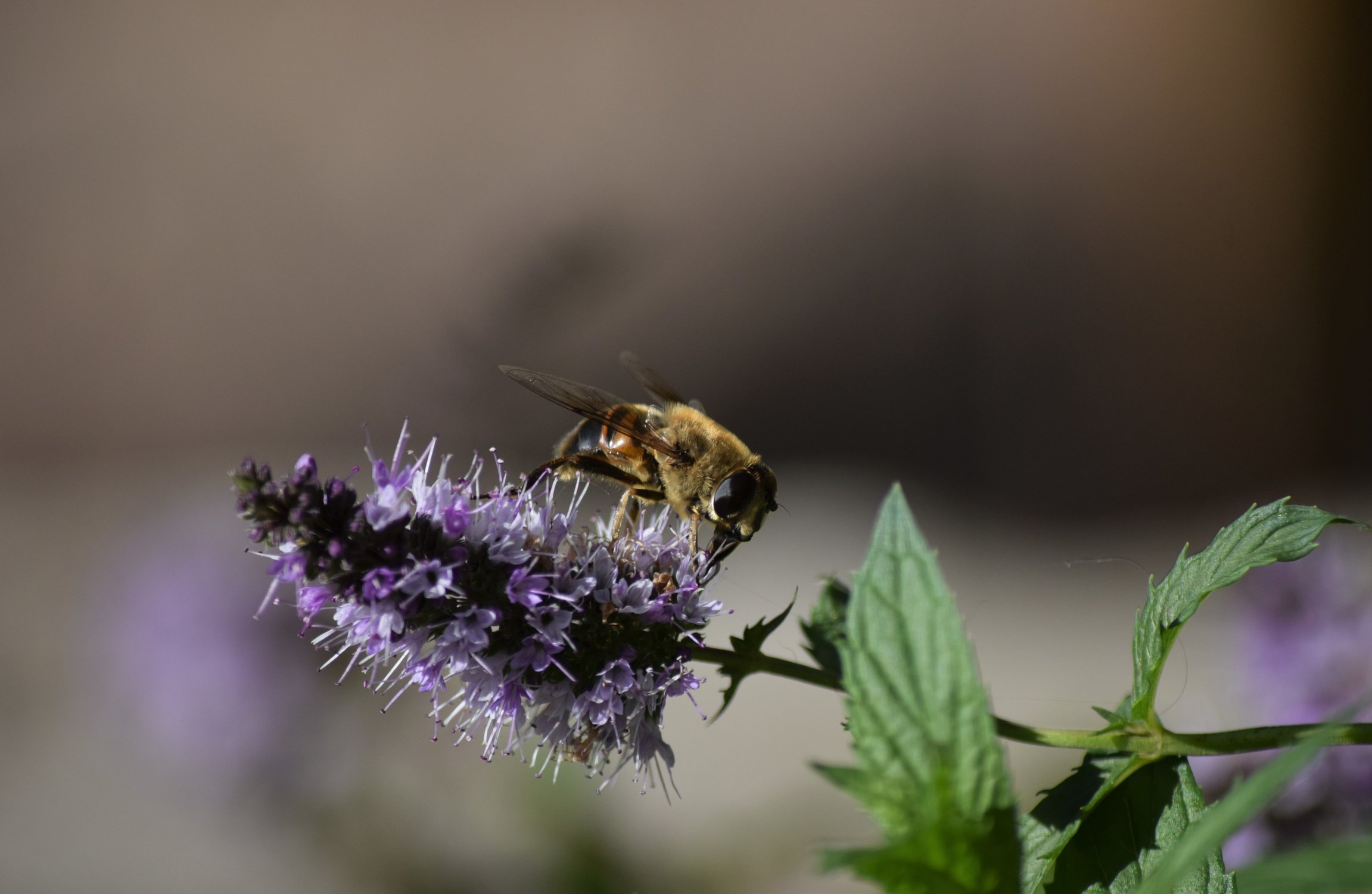 Пчела на цветах мяты теплым сентябрьским днем, Саратовская область, 2022
