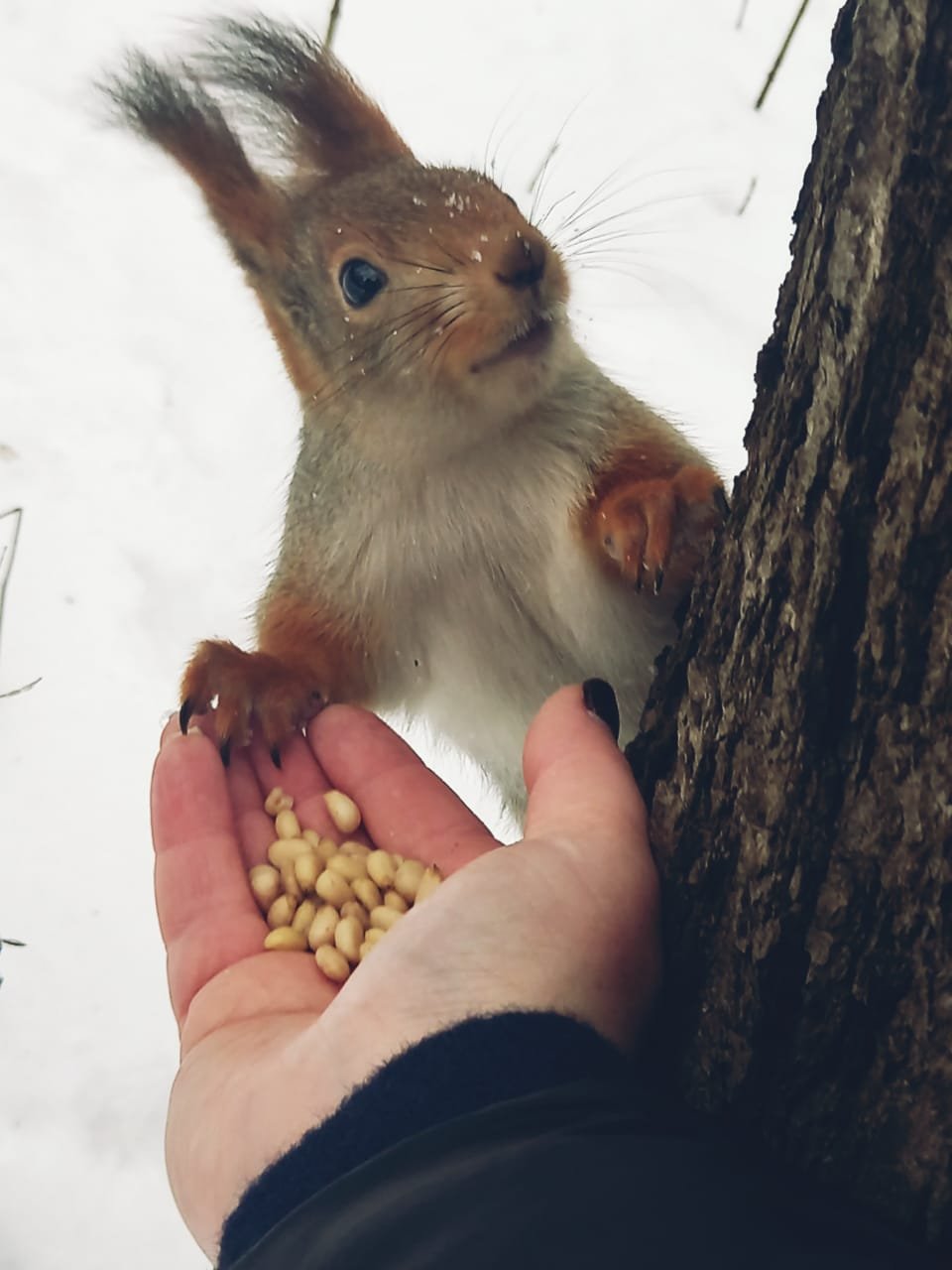 Белки парка "Царицыно" очень дружелюбны и любопытны