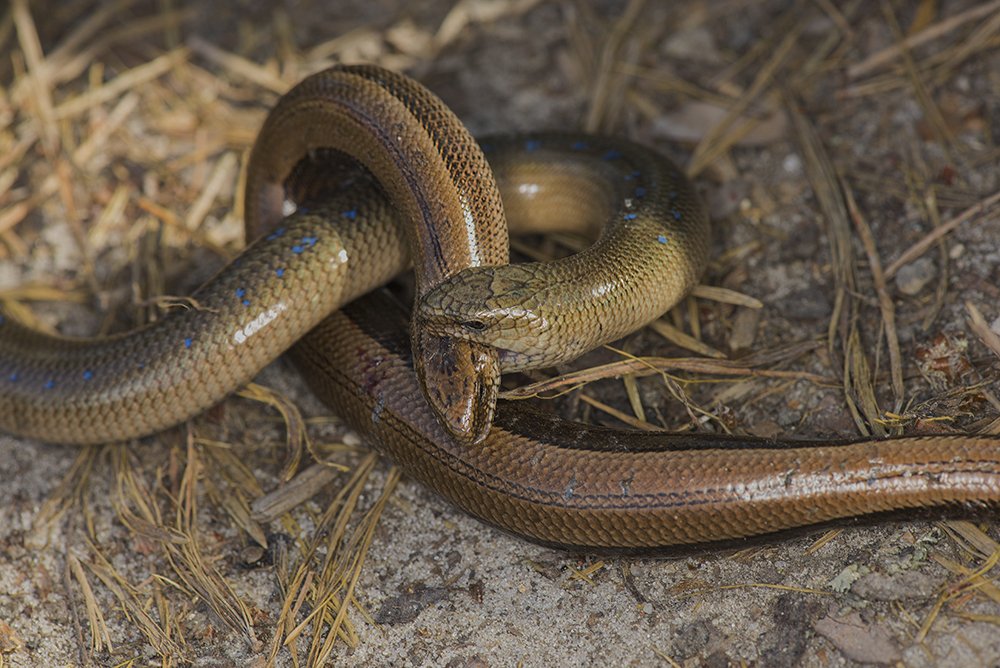 Колхидская веретеница ( Anguis colchica) — вид безногих ящериц, ранее считавшийся подвидом ломкой веретеницы. Брянская область. Самец безногой ящерицы понуждает самочку к продлению рода. Фото Иван Сильченко.