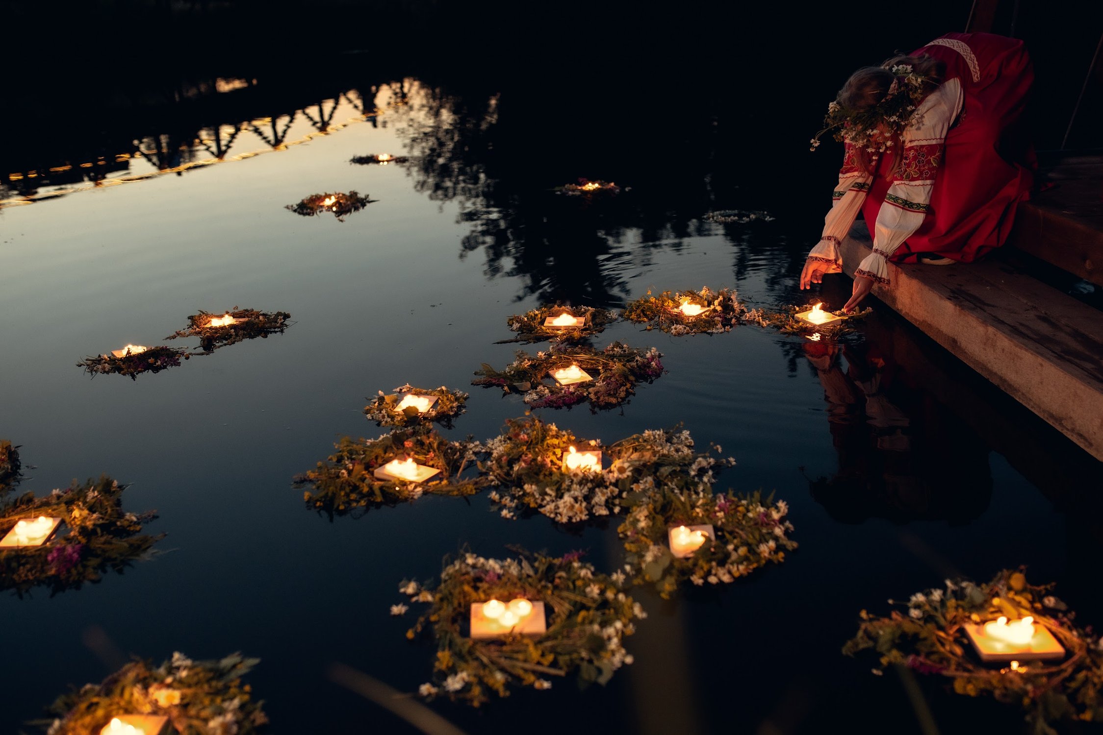 Опускание венок в реку