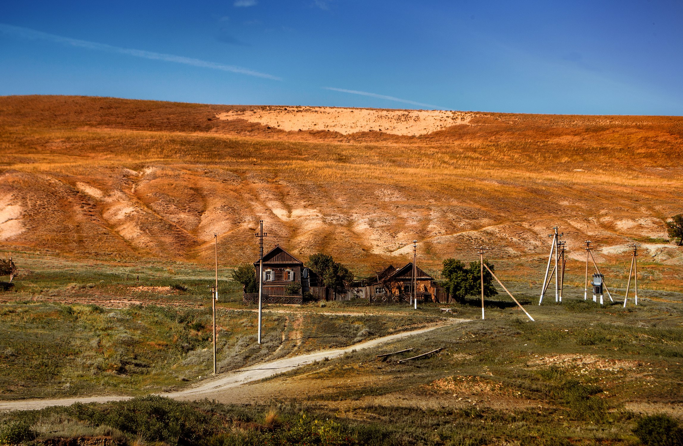 Одинокий дом по пути к утесу Степана Разина в Саратовской области.