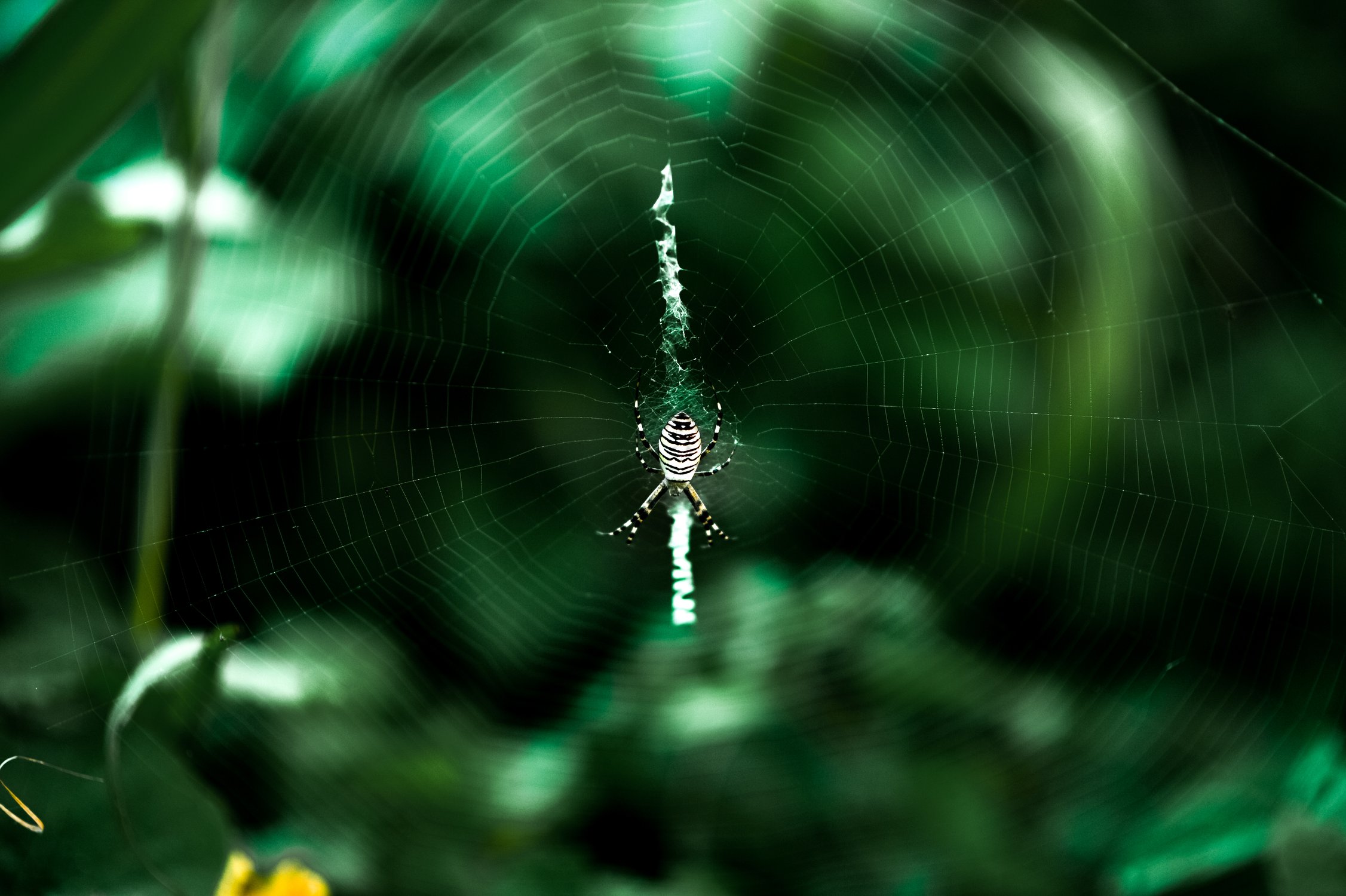 Аргиопа Брюнниха чинит свою паутину