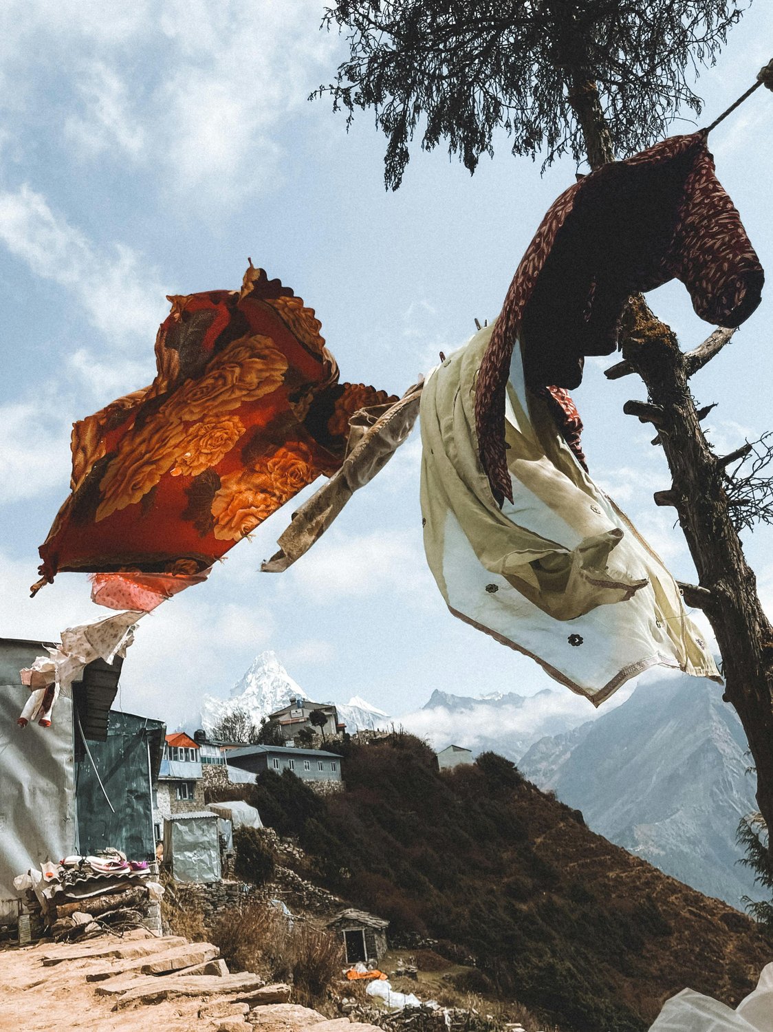 Деревня в Непале, вид на гору Ама-Даблам