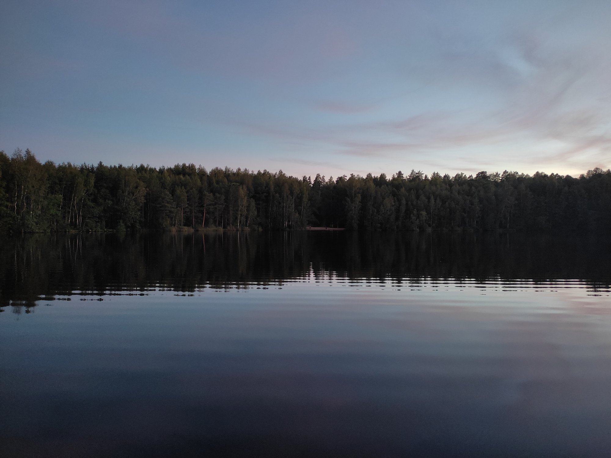 Густой березово-сосновый лес на южном берегу небольшого марийского озерца Щучьер. Первая половина августа.