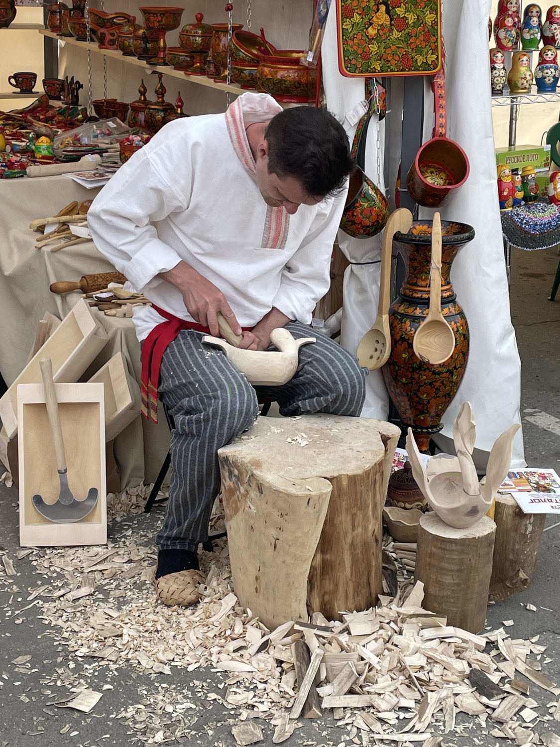 Фото сделано на празднике дня города Семенова, Нижегородская область , спомощью iPhone. На фото изображен процесс создания Хохломского изделия .