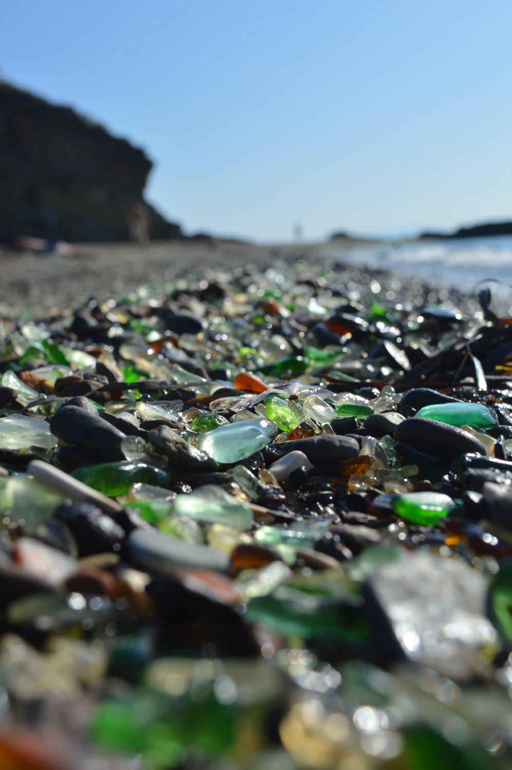 Бухта именуемая в народе Стеклянуха города Владивостока. Пляж состоящий из кусочков гладких стеклышек.