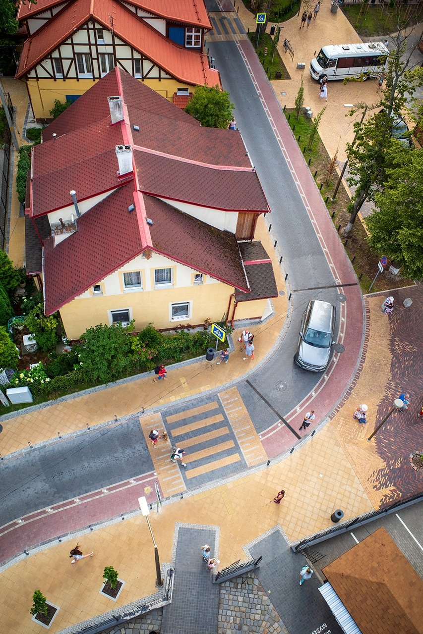 Вид со смотровой площадки музея «Мурариум», располагающейся в водонапорной башне. Зеленоградск, Калининградская область.