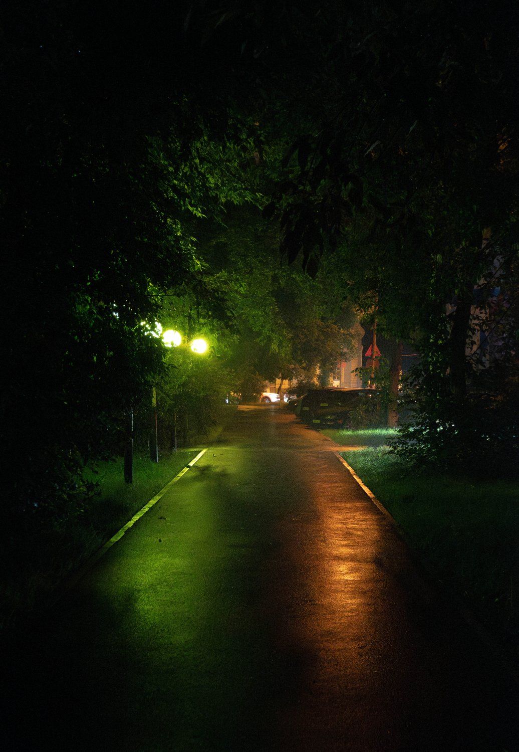 темная улица после фейерверков на дне города в екатеринбурге, фотография сделана по пути домой после зрелищных взрывов в небе.