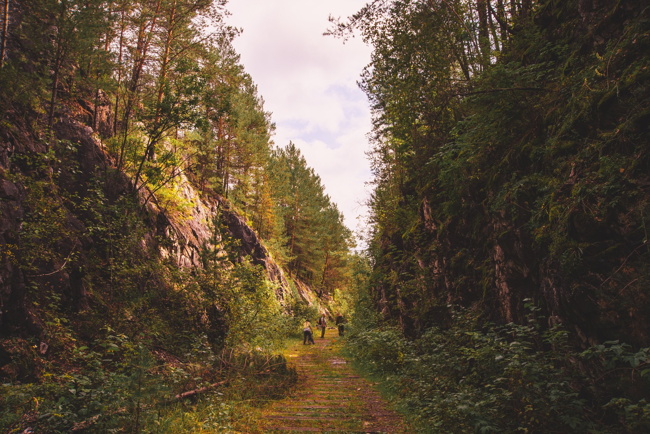 Фотография сделана в Кемеровской области, рядом с городом Гурьевском. Место на фотографии называется Разноцветный каньон - это участок заброшенной железной дороги в прорубленном скальном грунте.