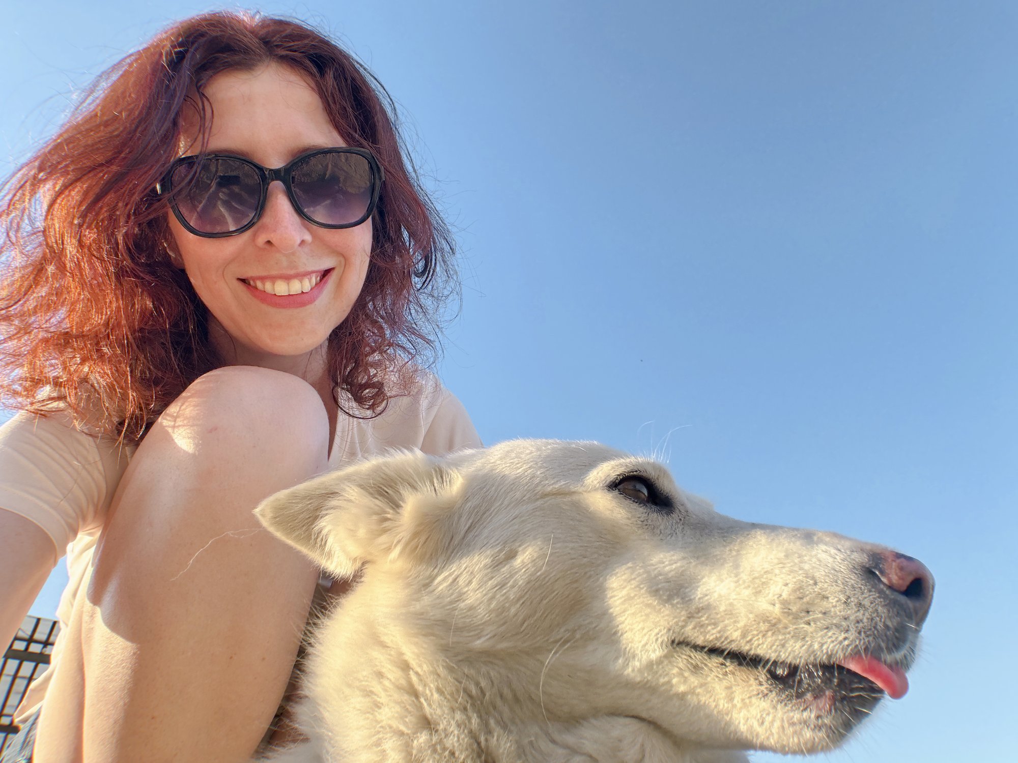 Встретила на пляже такую забавную дружелюбную собаку. Она не отказалась попозировать для нашего селфи
