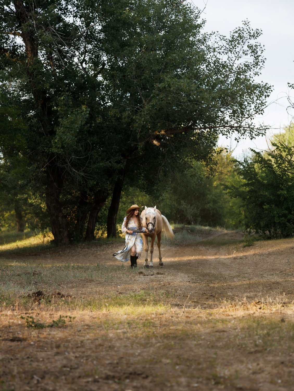 Летние прогулки по лесу радуют не только людей. Молодой конь жеребец обожает бродить со своей хозяйкой и находить новые поляны с зеленой травкой.