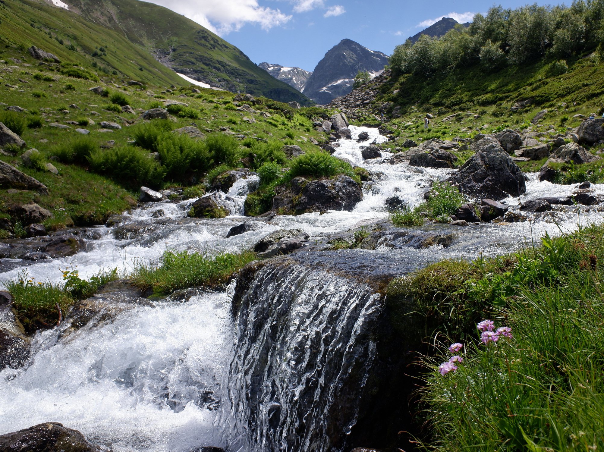 Пороги горных рек образуют бурное течение и маленькие но живописные водопады