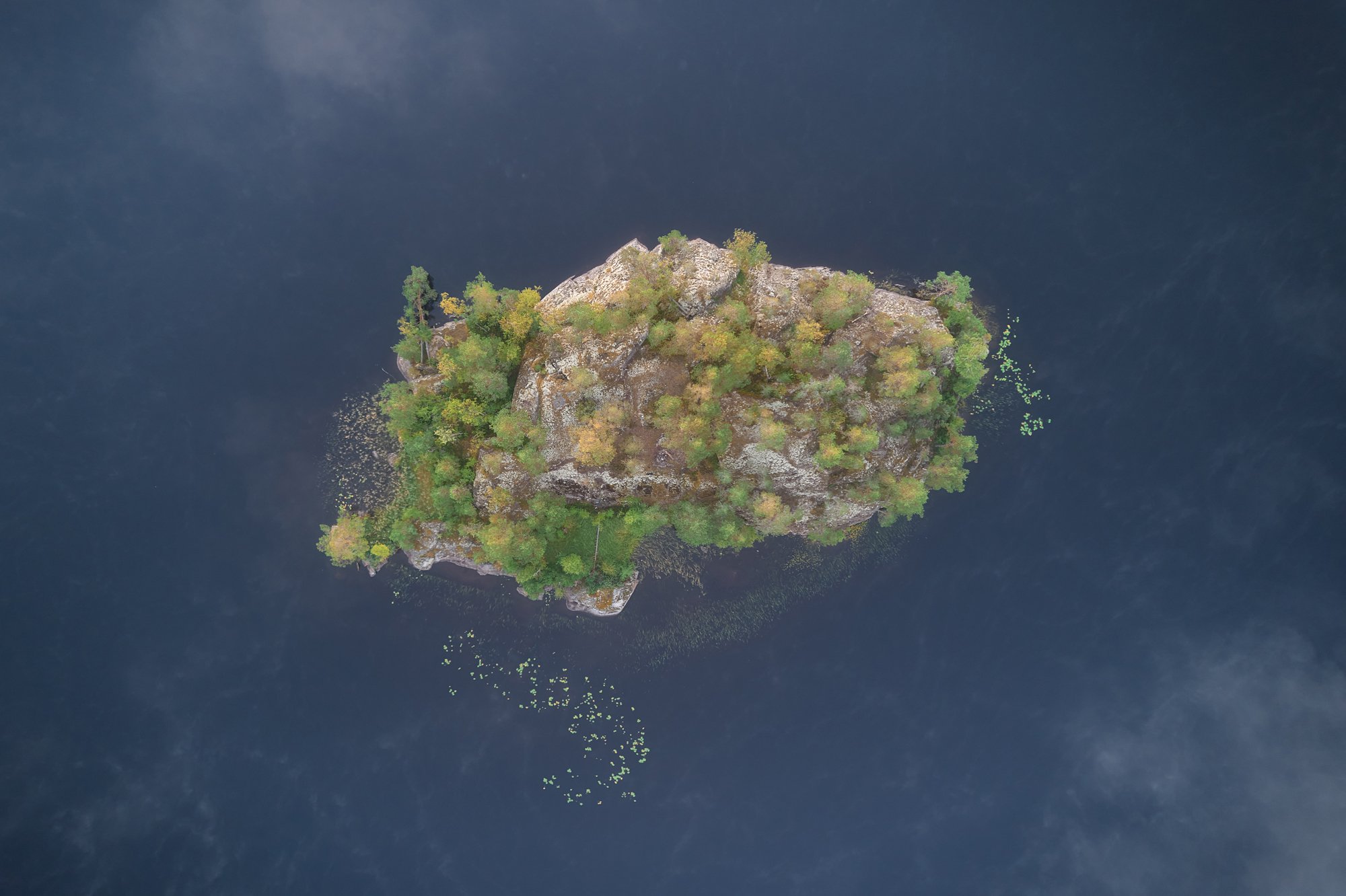 Иногда ракурс меняет восприятие места. Сбоку это просто остров на озере. а сверху - капелька зелени в окружении воды и тумана.