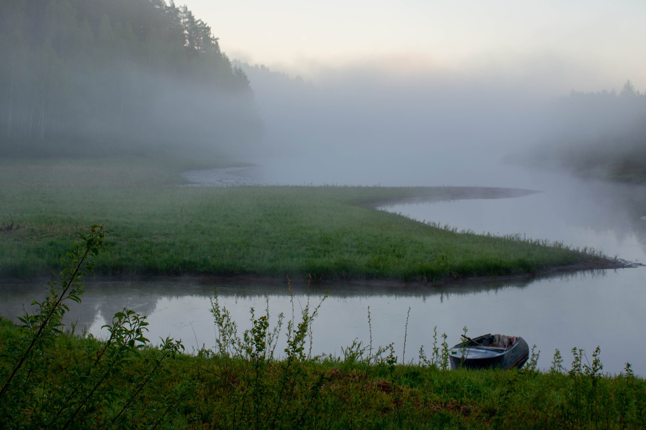 Туманное утро над прудами в заброшенном селе Ведрец в Удмуртии