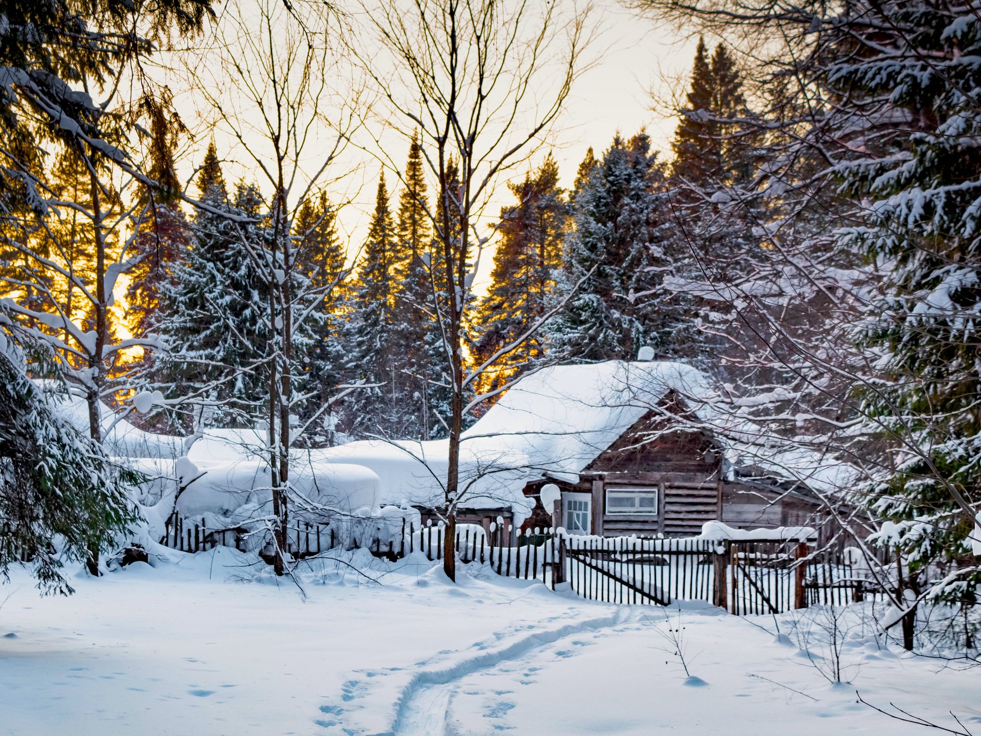 Зимний вечер в маленьком домике среди леса, куда из ближайшей деревни добраться можно только на лыжах