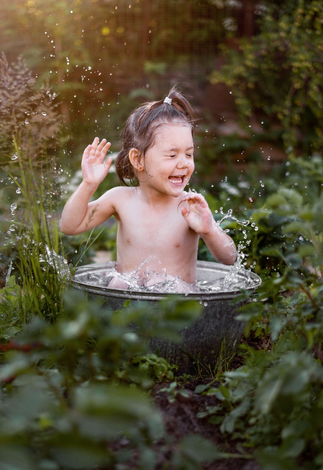 В теплое время года вода - настоящий спаситель, а если ты помещаешься в тазик - то еще и аттракцион!