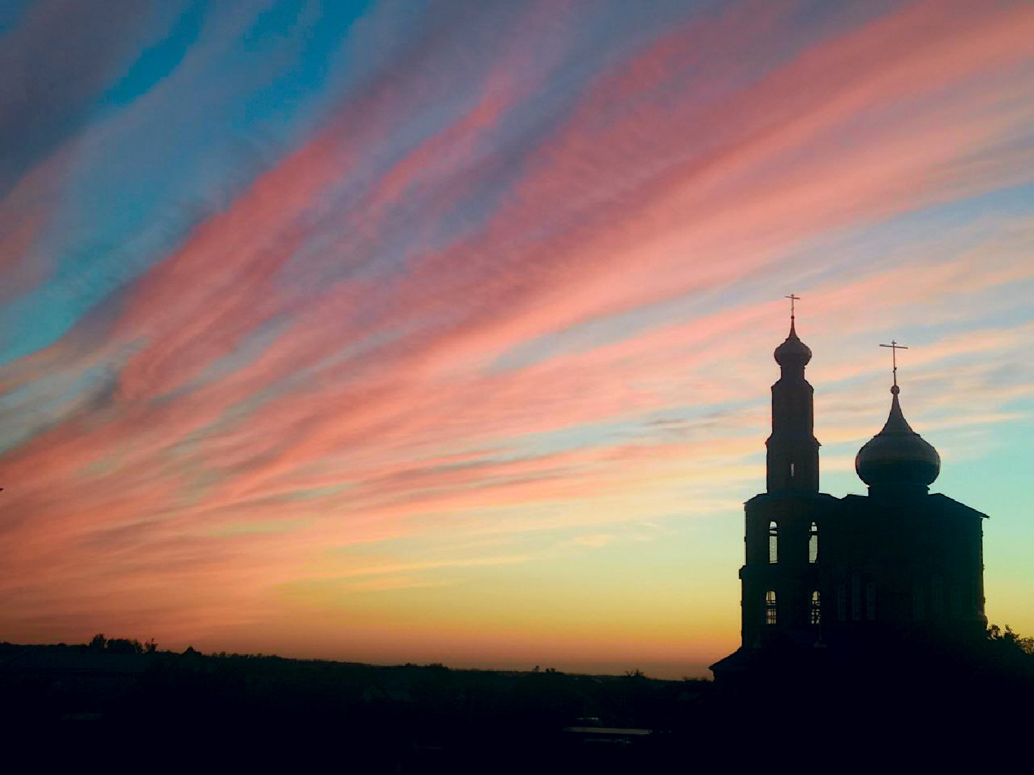 Сельская церковь на закате.
