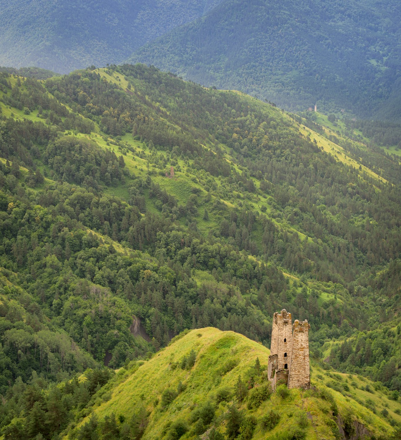 Ингушетия, заповедник Эрзи, башни "Двух соперниц", 07.07.2024