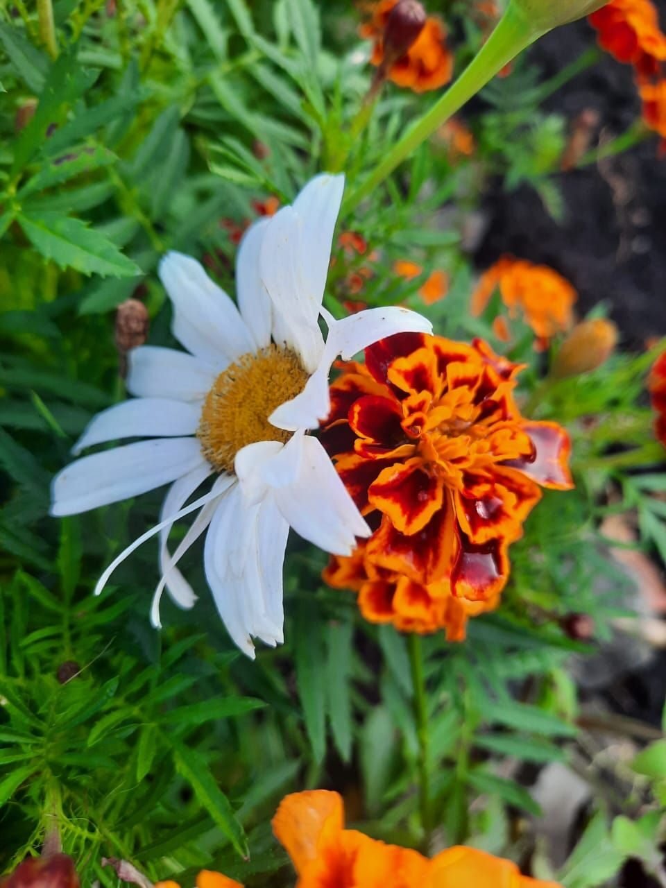 На дворе стоял месяц октябрь. На Урале - похолодало. Два цветка в моём саду, прижавшись, спасали друг друга от осенней прохлады.