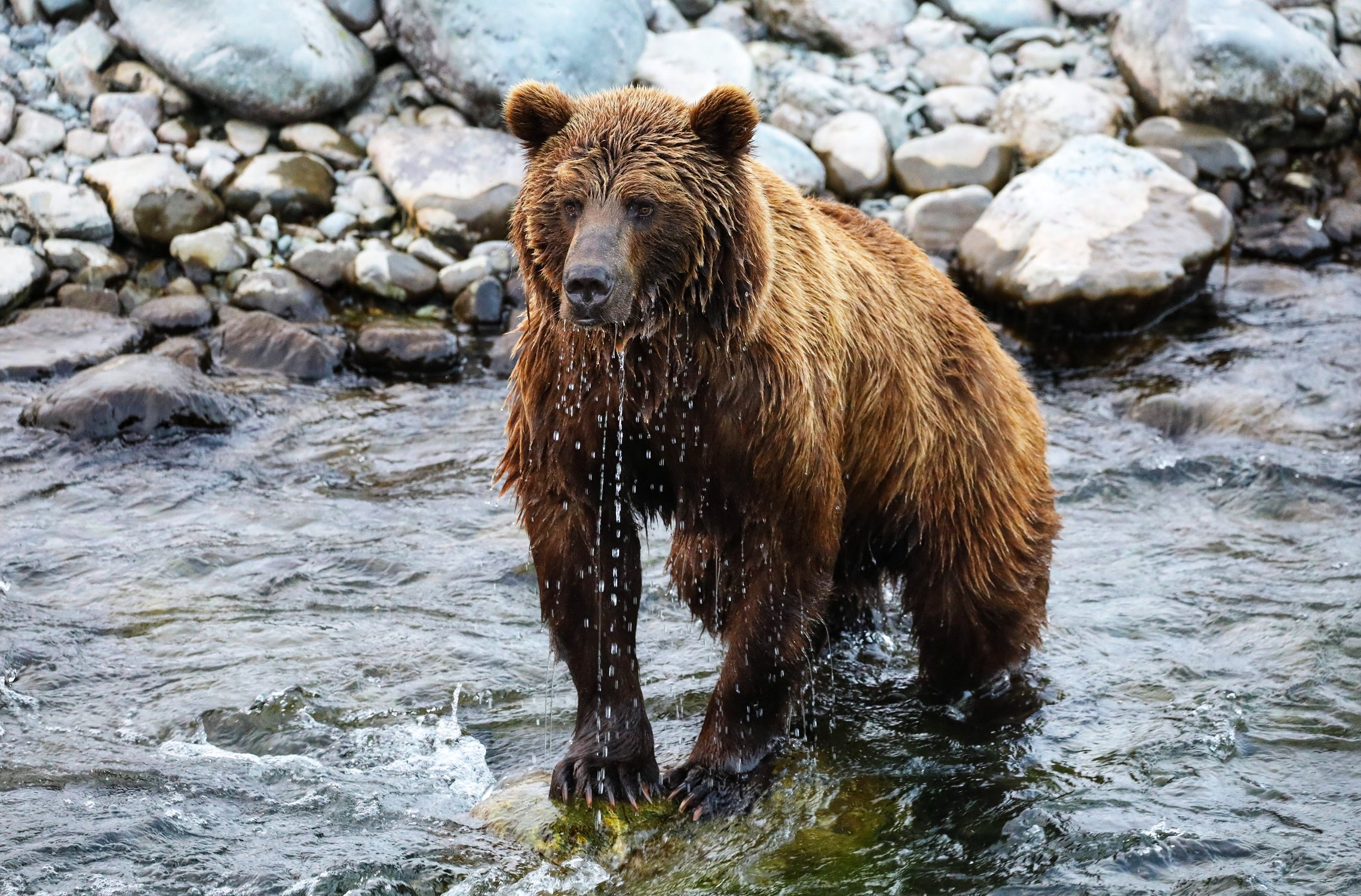 Медведь спустился к реке чтобы порыбачить . Магаданская обл, полуостров Кони