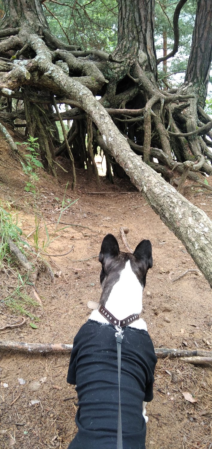 На отдыхе увидел кошку которая спряталась в корнях дерева.
