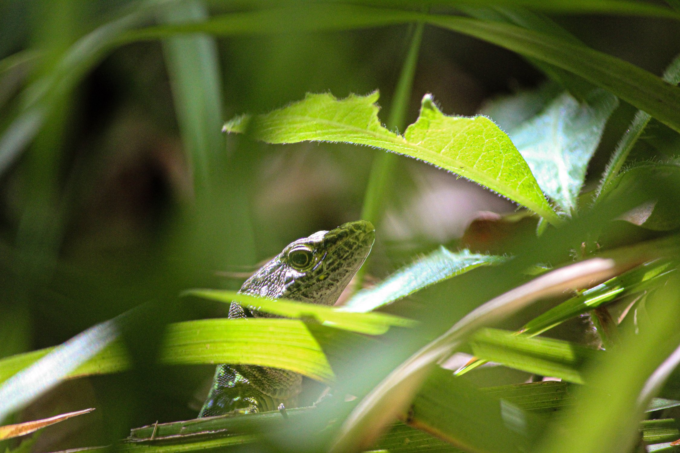 Даже маленькой ящерке может быть страшно и любопытно. В лесах города Сочи.
