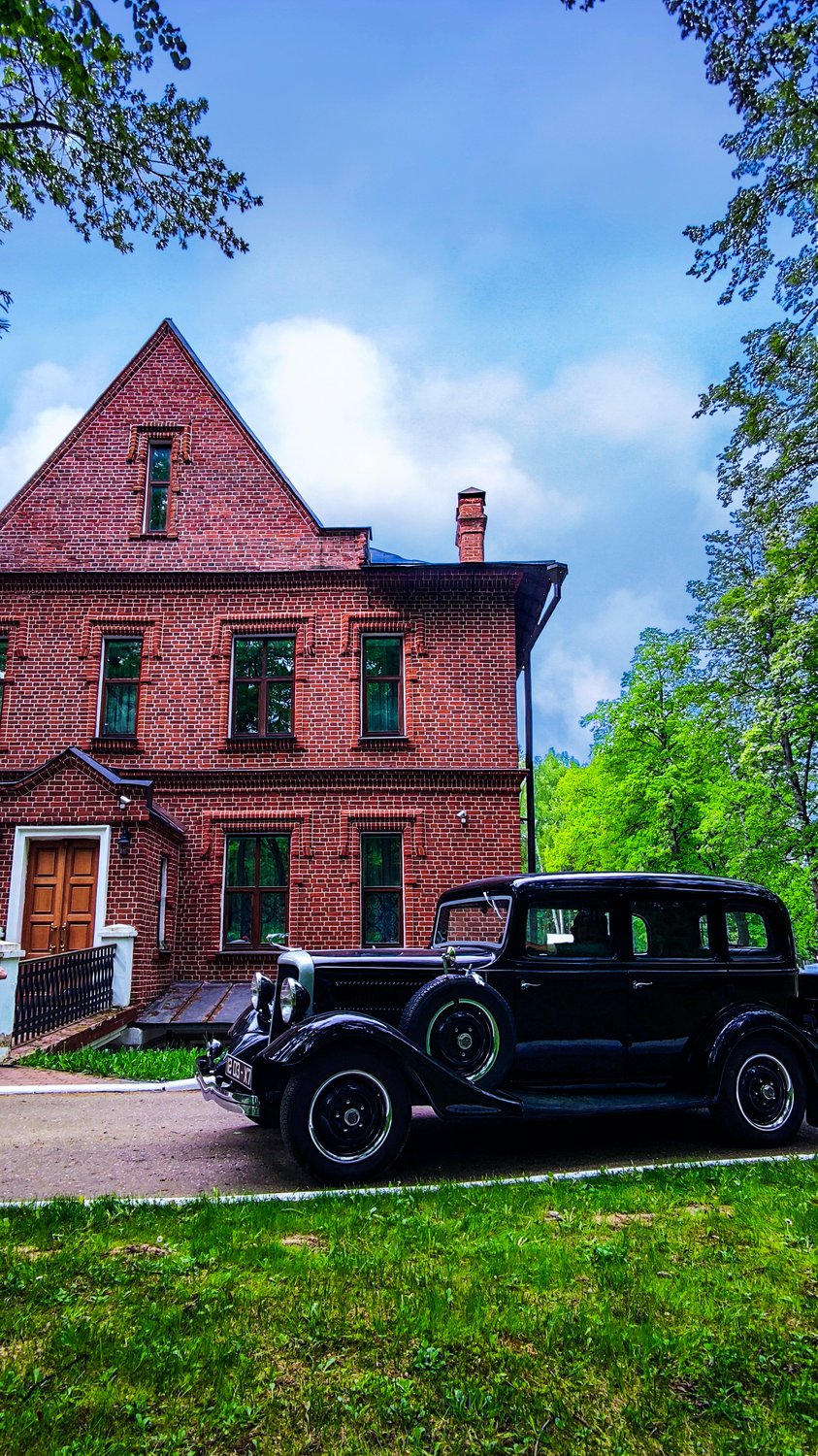 Старый автомобиль на внутренней дороге возле усадьбы Мцыри, санаторий, Московская область.