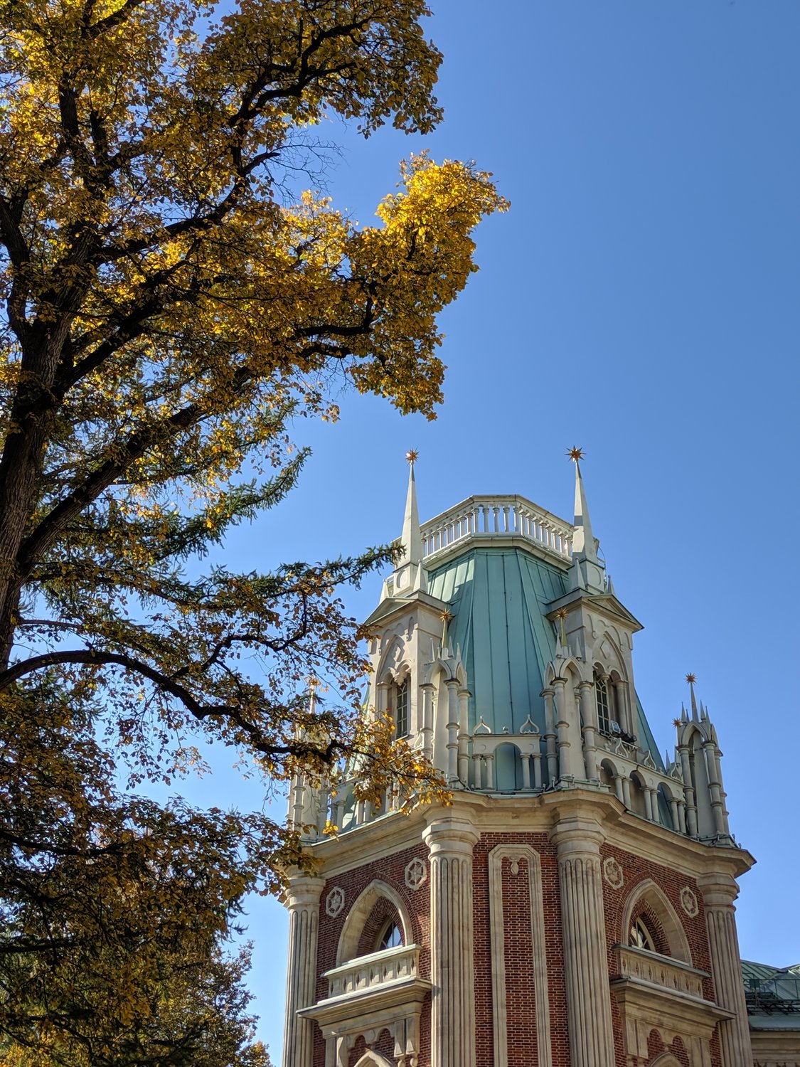 Дворец в осеннем обрамлении в Царицыно